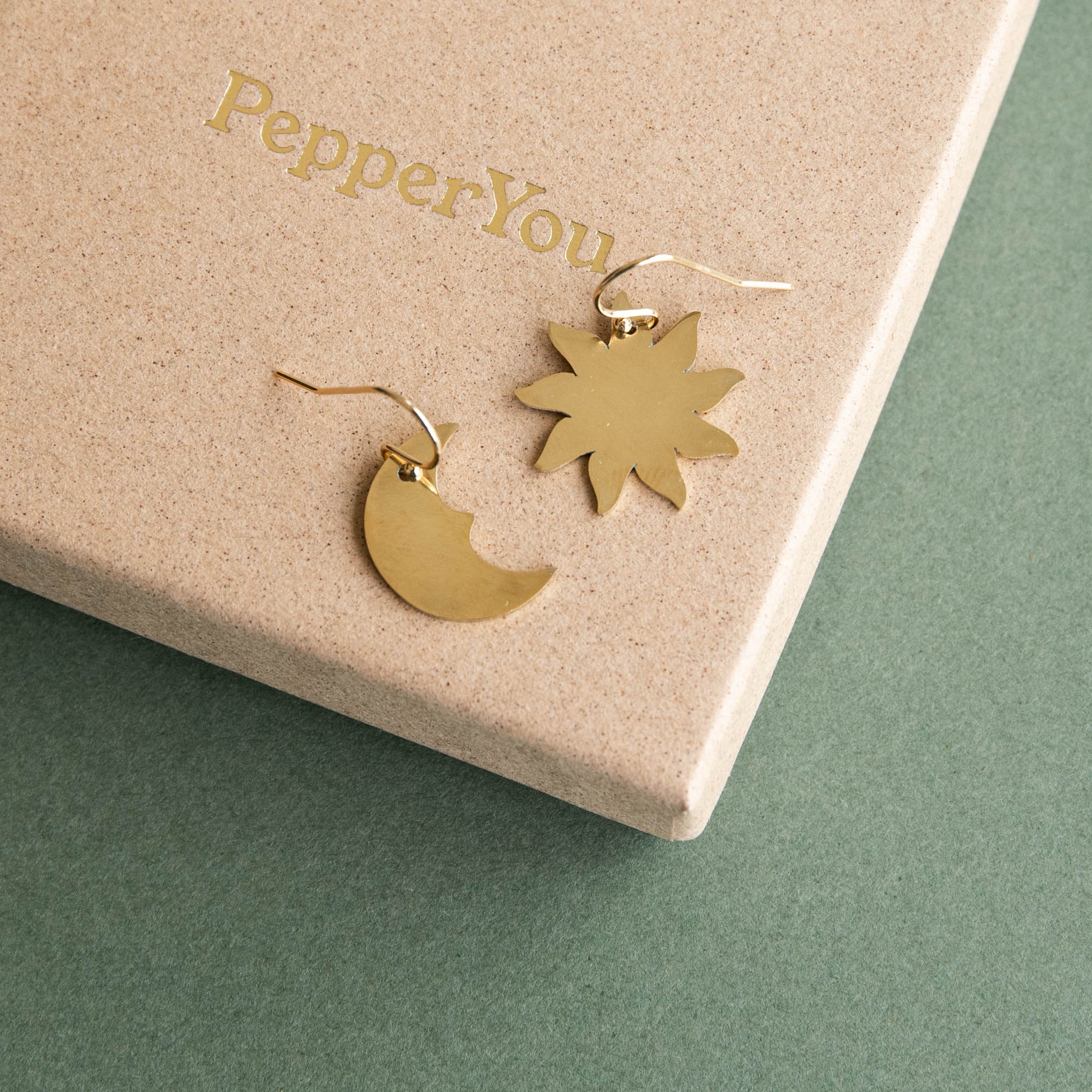 Packaging: These earrings are presented on a Pepper You card (made from recycled paper) and then placed into a gold logo Kraft brown gift box. If you would like to purchase a fair trade cotton gift bag and jewellery cloth to store these earrings in please see here.