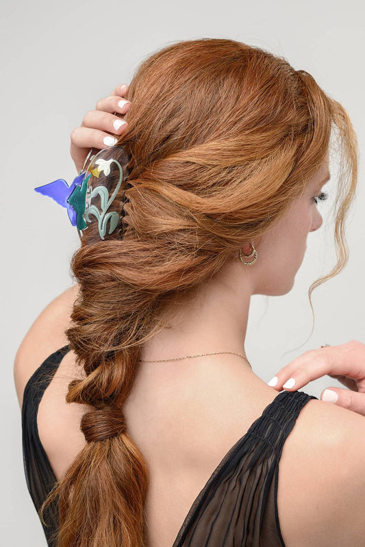 Narcissus Flower and Hummingbird Clear Acetate Hair Claw