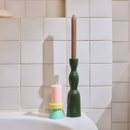 Stripe Dinner Candle: Chartreuse Green / Charcoal
