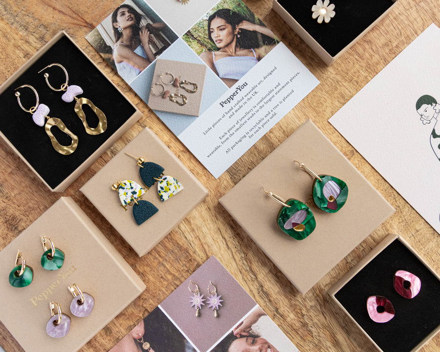 All Pepper You jewellery will arrive with you presented in our signature gold-branded gift box, studs arrive on gold branded cards.