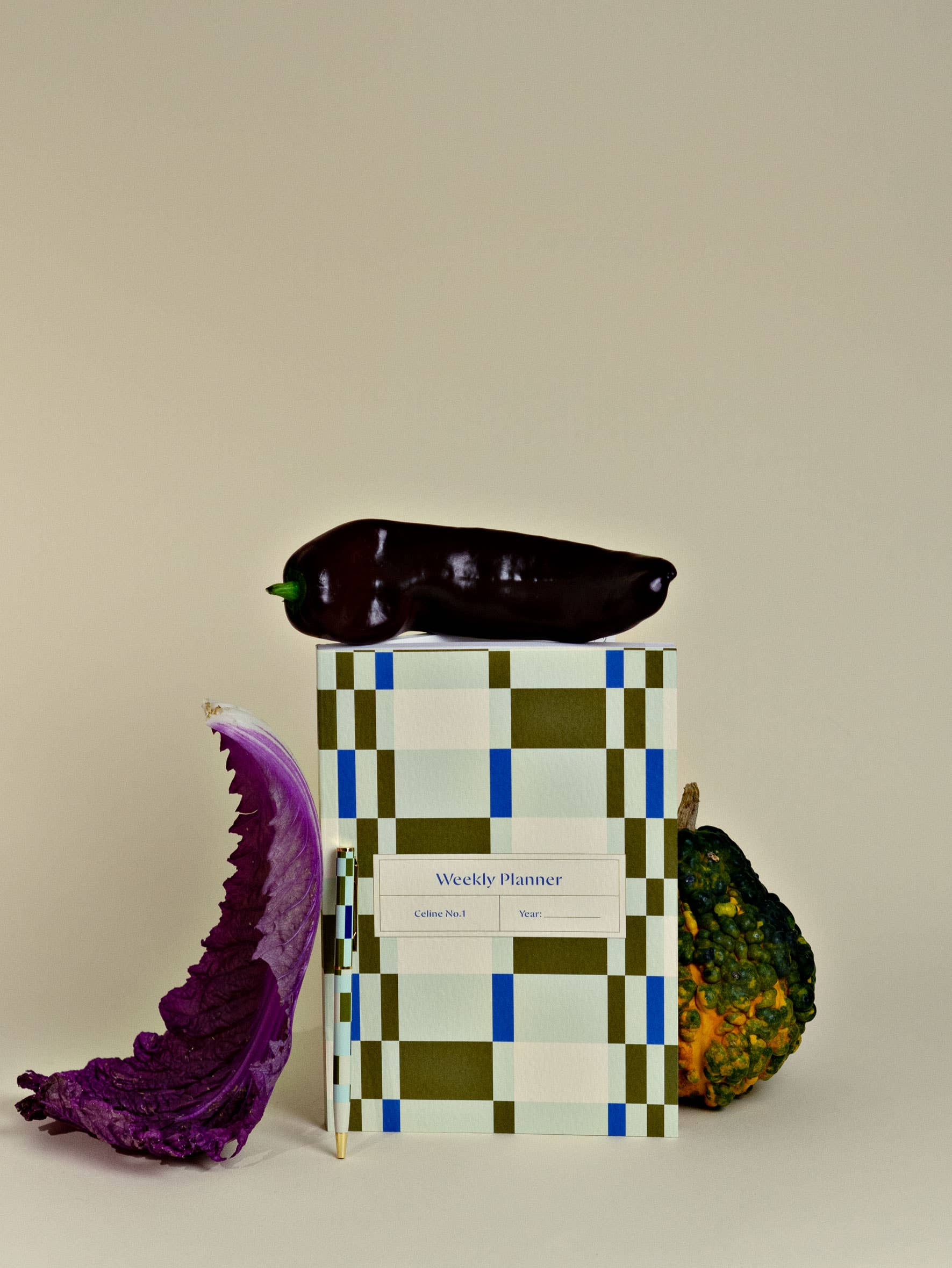 Clean, calm, and ready to get things done, the Celine Weekly Planner features a soft check print in pale green and khaki tones for a quiet-but-confident addition to your stationery lineup.
