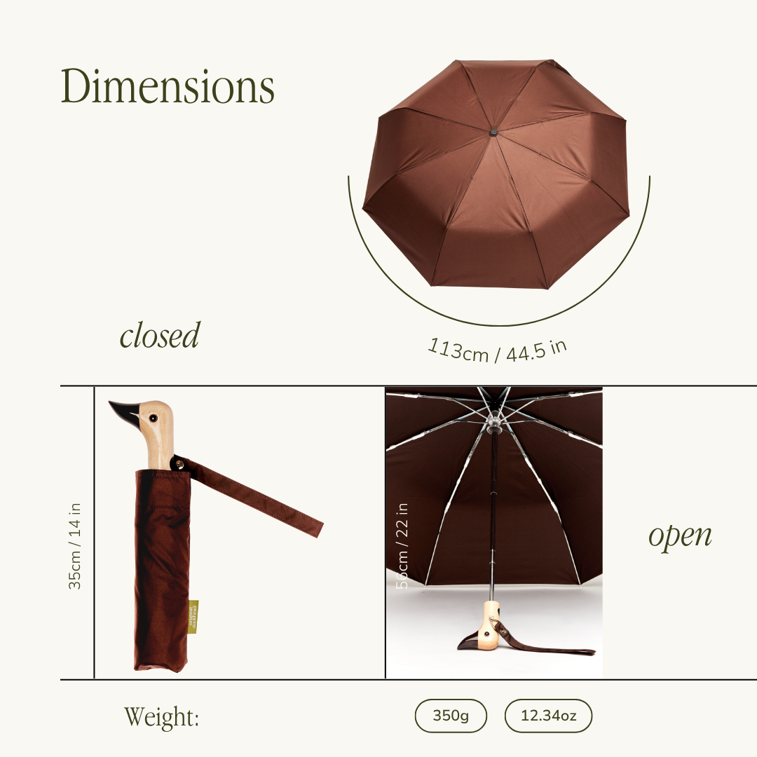 Compact Eco-Friendly Wind Resistant Duck Umbrella - Espresso Brown
