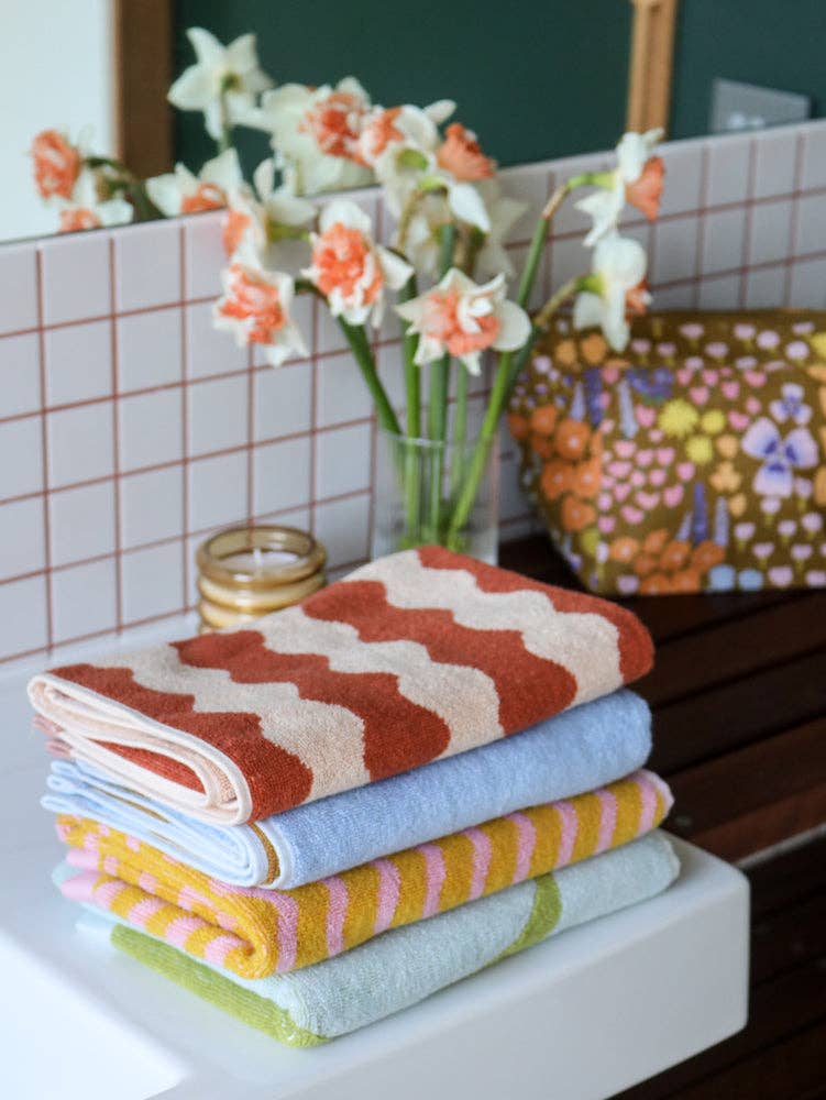 Elevate your bathroom with the Shapes hand towel. Designed to suit all tastes and spaces, the cornflower and gold tones give this bold print a calming, zen vibe perfect for your self-care space. These ultra-plush hand towels are made from 100% organic cotton for high absorbency and a luxurious hand-feel.