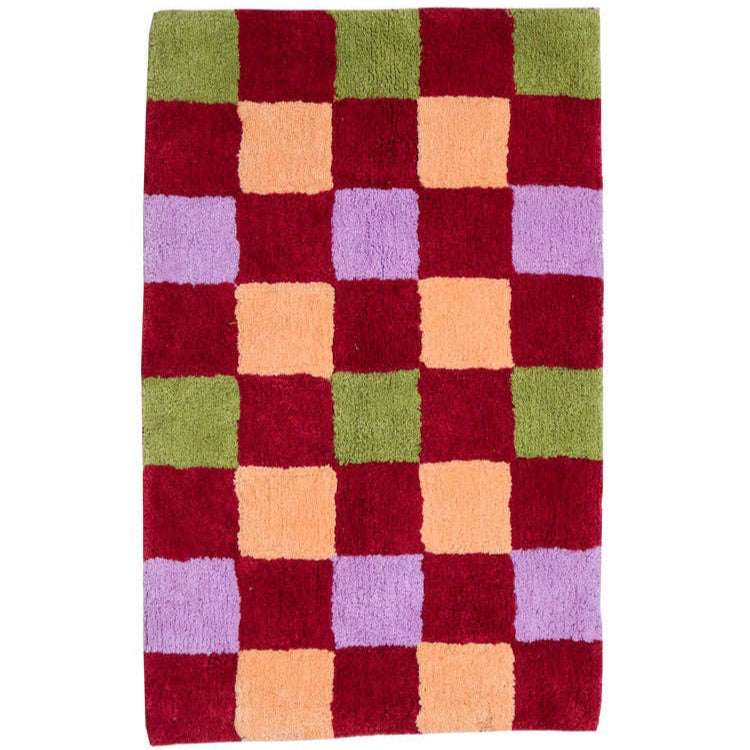 Add some colour to your bathroom with the Winter Checkers Bath Mat. This update on this best-selling checkers style features a bold, autumnal palette of burgundy, olive, peach and lilac, and is designed to pair effortlessly with our Pistachio Stripe towels. High on absorbency and practicality, these bath mats are made from plush tufted cotton that feels delightful under your toes and feature a latex non-slip backing.